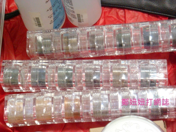 (圖中人物:Naked Cosmetics出的類似MAC的魔幻星塵的散粉狀眼影。顏色超級飽和的啦!重點是完全不飛粉,而且可以沾水喔!連我這個散粉狀眼影的初學者,用起來都是收放自如。而且顏色千百種不輸給MAC喔!重點是價錢比MAC可愛多啦!像這樣一條六個顏色加幣$25也就是台幣$675,兩條十二個顏色加幣$50也就是台幣1350,三條十八個顏色加幣$60也就是台幣$1620喔!唉呦,反正買越多傳越多啦!所以如果不需要這麼多顏色的話,可以跟朋友合買,這樣真的會省很多喔!我跟另外兩個朋友合買,這樣一條六個顏色才$20也就是台幣$570,超划算!妞妞下次會po試用文讓大家看看它的效果,想更進一步地了解Naked的,請按Naked Cosmetics的官網喔!)