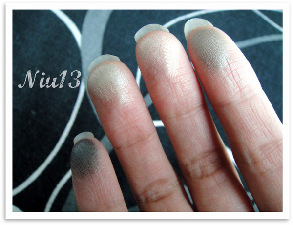 *妞妞的自言自語:之所以黑潮的濕擦會差那麼多,妞妞覺得是因為裡面的珍珠。因為珍珠的關係,眼影餅的粉質顆粒變大了。相對的顏色就無法那麼均勻,吸收了水分以後顏色才變飽和。雙色眼影餅因為是純礦物,所以沒有顆粒方面的問題。妞妞要是有認知上的錯誤要跟妞妞說捏!