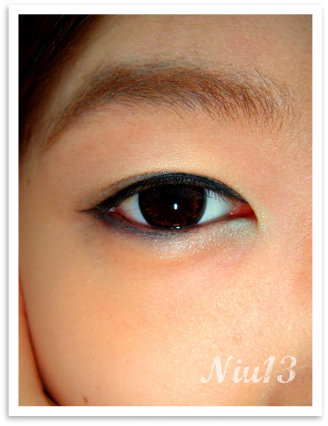 眼妝:MAC 染眉膏, PN 眉粉, CANMAKE 眉筆, UDPP, Stila 眼線膠, MAC 眼線筆, MAC 瘋藝術4色時尚眼影盤, Lancome 捲翹睫毛膏, eyetalk 雙眼皮膠 (黏假睫毛)