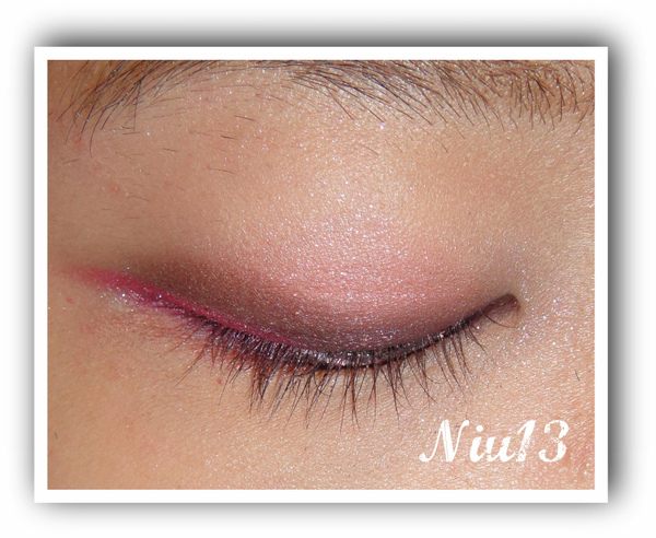 4. 用Kate下方的 E (深咖啡色) 如圖沿著上眼際上色,在眼尾稍稍加重。