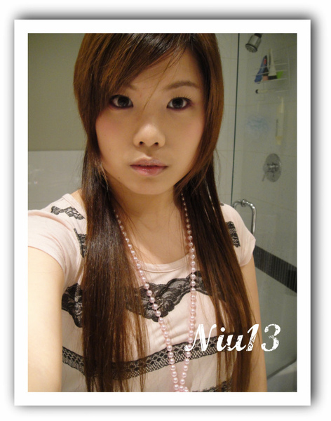 完妝自拍。我超愛我身上這件H&M的粉紅蕾絲長T