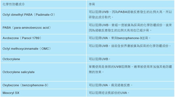 下面附上防曬用品中常見的化學成分,