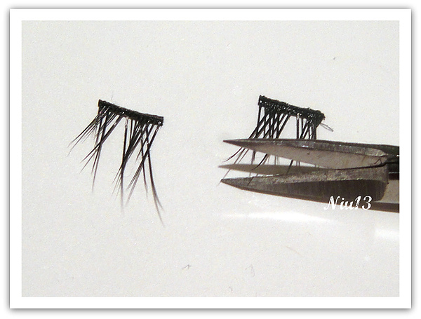 下睫毛就是重頭戲,我拿了剛剛剪下來的兩小撮的其中一撮,