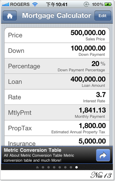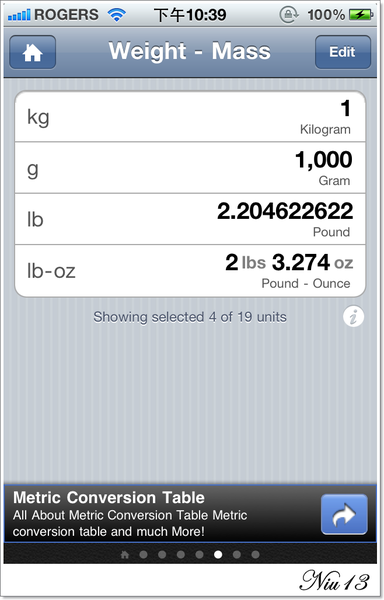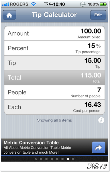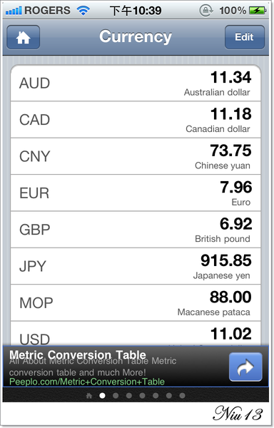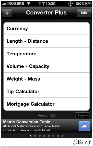 - 它裡面含括了七個換算的程式 (eg. 匯率, 長度單位, 溫度, 容量單位, 重量單位, 小費計算機, 房貸計算機)