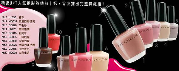 P.S. 現在官網UNT指甲油全面7折喔!它們現在還推出了經典TOP10的指彩組,大家可以參考一下。